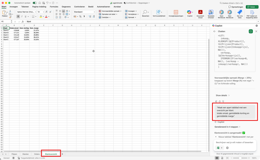 In veel MKB-bedrijven is Excel het hart van de operatie: prijzen, kortingen, klanten en marges. Agent Mode in Excel maakt dit werk eenvoudiger door je in normale taal te laten werken, terwijl Excel de formules en structuur voor je regelt.