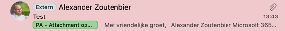 Bijlagen worden gescand door Microsoft Defender en nooit extern opgeslagen.